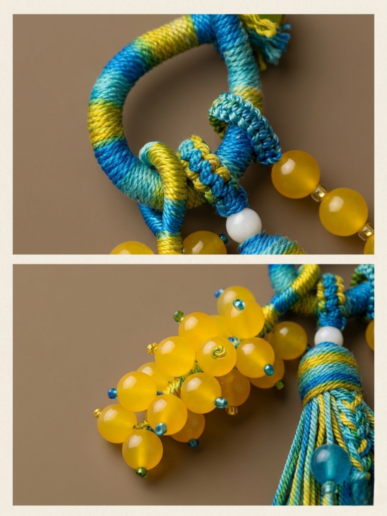 • Your Gift List: A “Prosperity & Harvest” gift, showing the complex effort of hand-tying over 20 individual beads into a single piece.