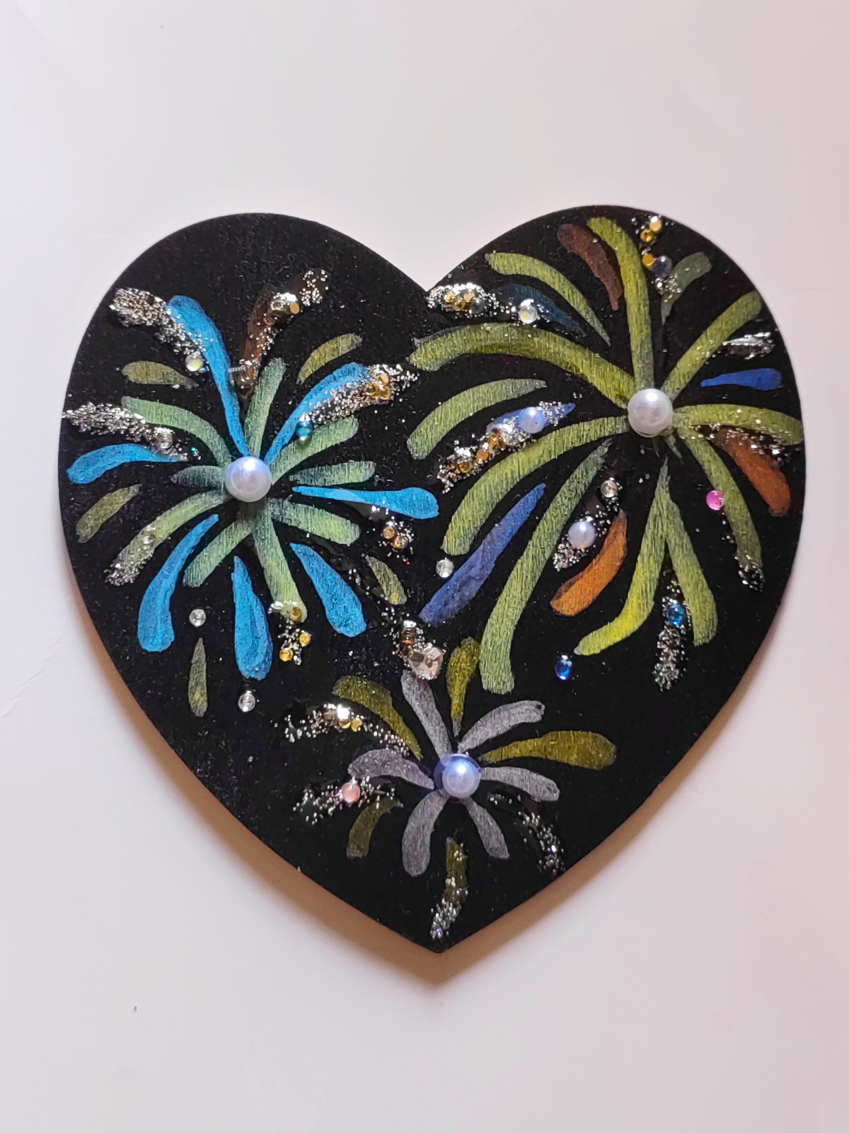 The contrast of the dark wood and bright, textured shell art gives this magnet a modern yet organic feel. Its heart shape makes it especially fitting as a sentimental gift or a decorative piece for those who cherish the sea.