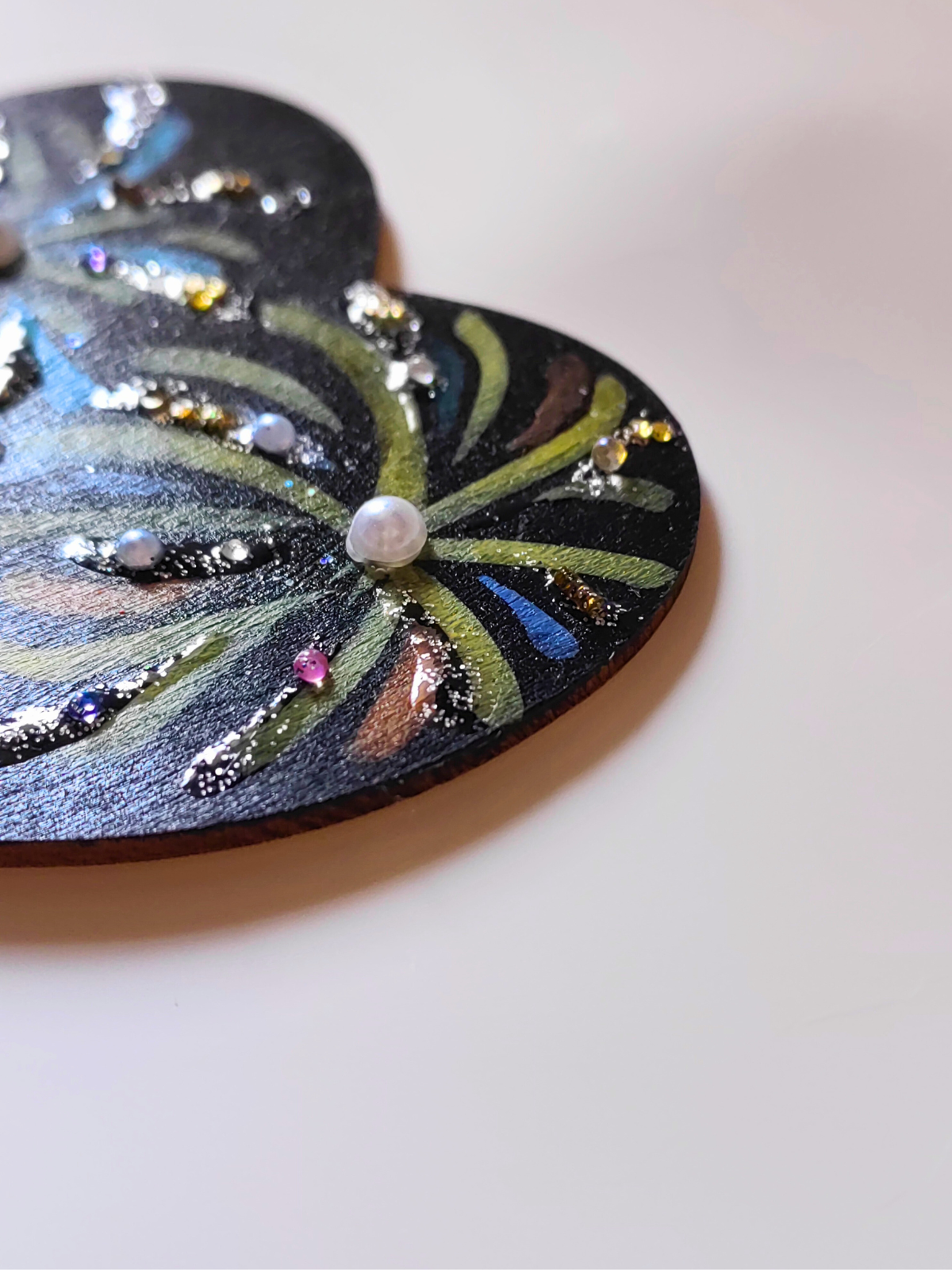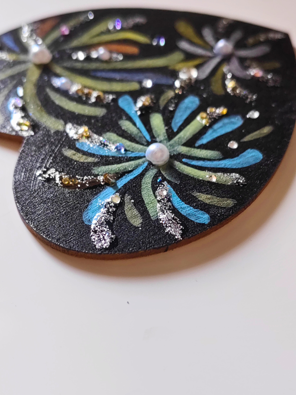 Be the first to review “Heart-Shaped Ocean Magnet with Shell Art – Handmade Black Wood Decor, 7cm”