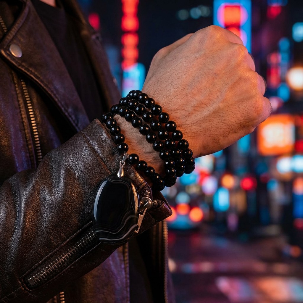 "The weight of the obsidian is real. It's cold, heavy, and feels like a piece of armor. The bespoke sizing was spot on—wrapped 4 times perfectly on my wrist."